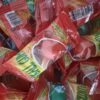 Ingrédients : Sucre, gomme de base (chewing‑gum), sirop de glucose, dextrose, arômes, humectant (glycérol), émulsifiant (lécithine de soja), régulateurs d’acidité (acide citrique, acide malique), agents d’enrobage (cire de carnauba E903, cire d’abeille E901, shellac E904), stabilisateur (gomme arabique E414), pectine, colorants (selon le timbre), antioxydant (BHT E321)